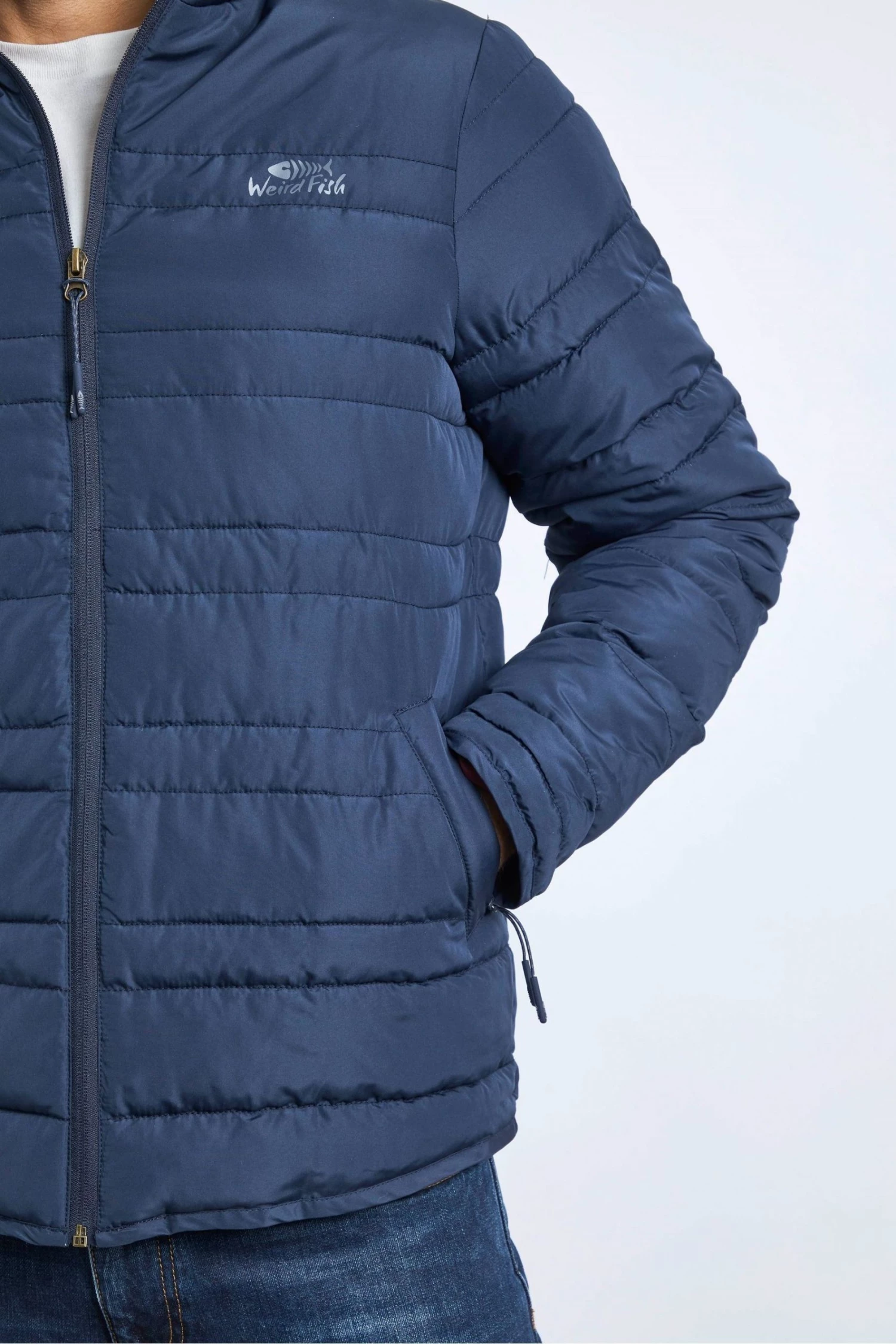 A practical and padded jacket, the Clearlake is a great go-to jacket during the transitional months. Featuring two hand slip pockets and high neckline to keep you toasty warm, the Clearlake recycled polyester jacket is exactly what you need this season. Pair with your favourite T-shirt and denim jeans for a relaxed, casual look. Two hand slip pockets. High neckline. Bungee cord zip detail. Full zip jacket. They love clothes and fabrics that do good, recycled polyester is making waves as it is turning pre-existing plastics such as that water bottle you used at a festival a life time ago into your new Weird Fish favourite. Using more recycled polyester rather than traditional polyester, reduces landfill, which means less soil contamination, air and water pollution.