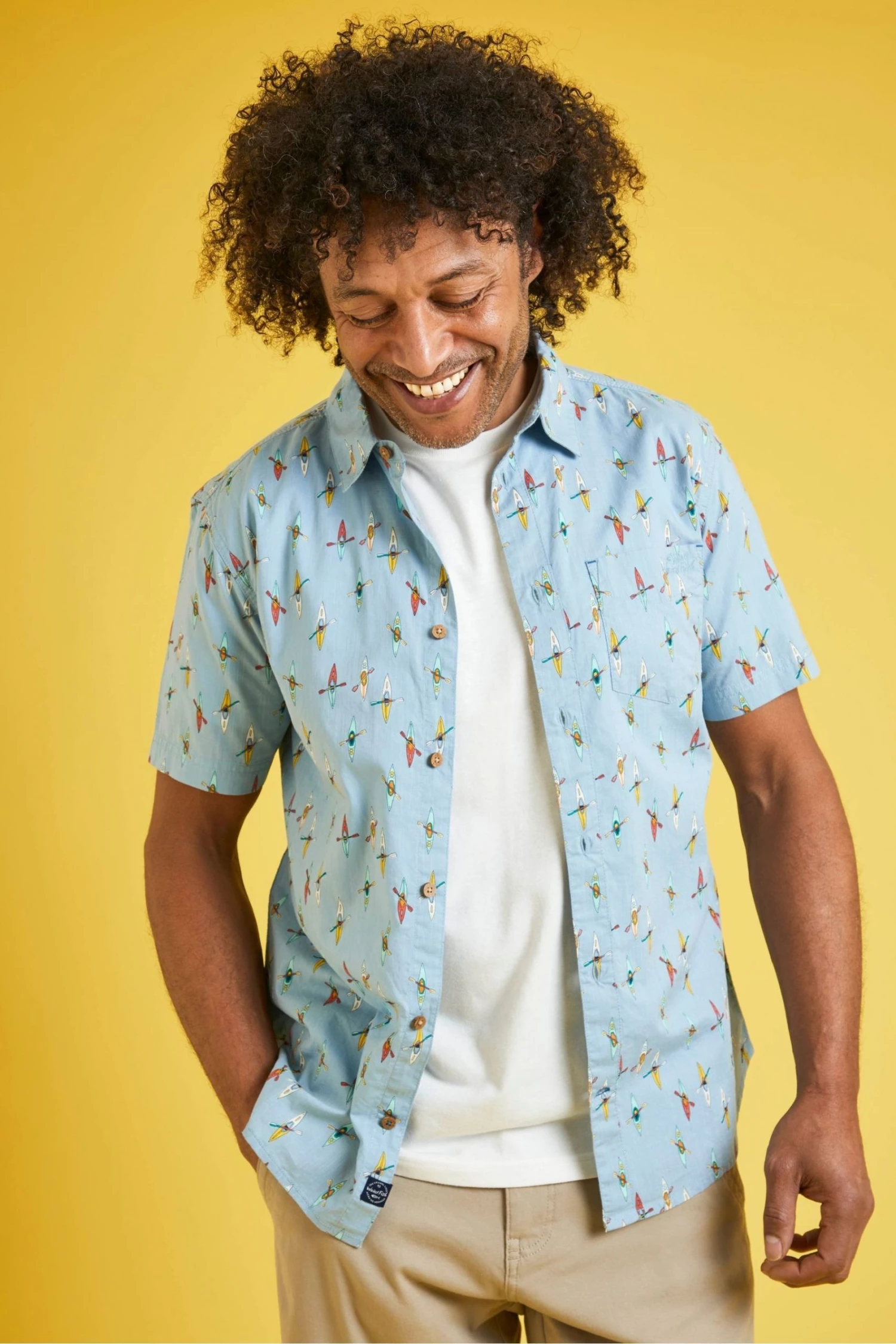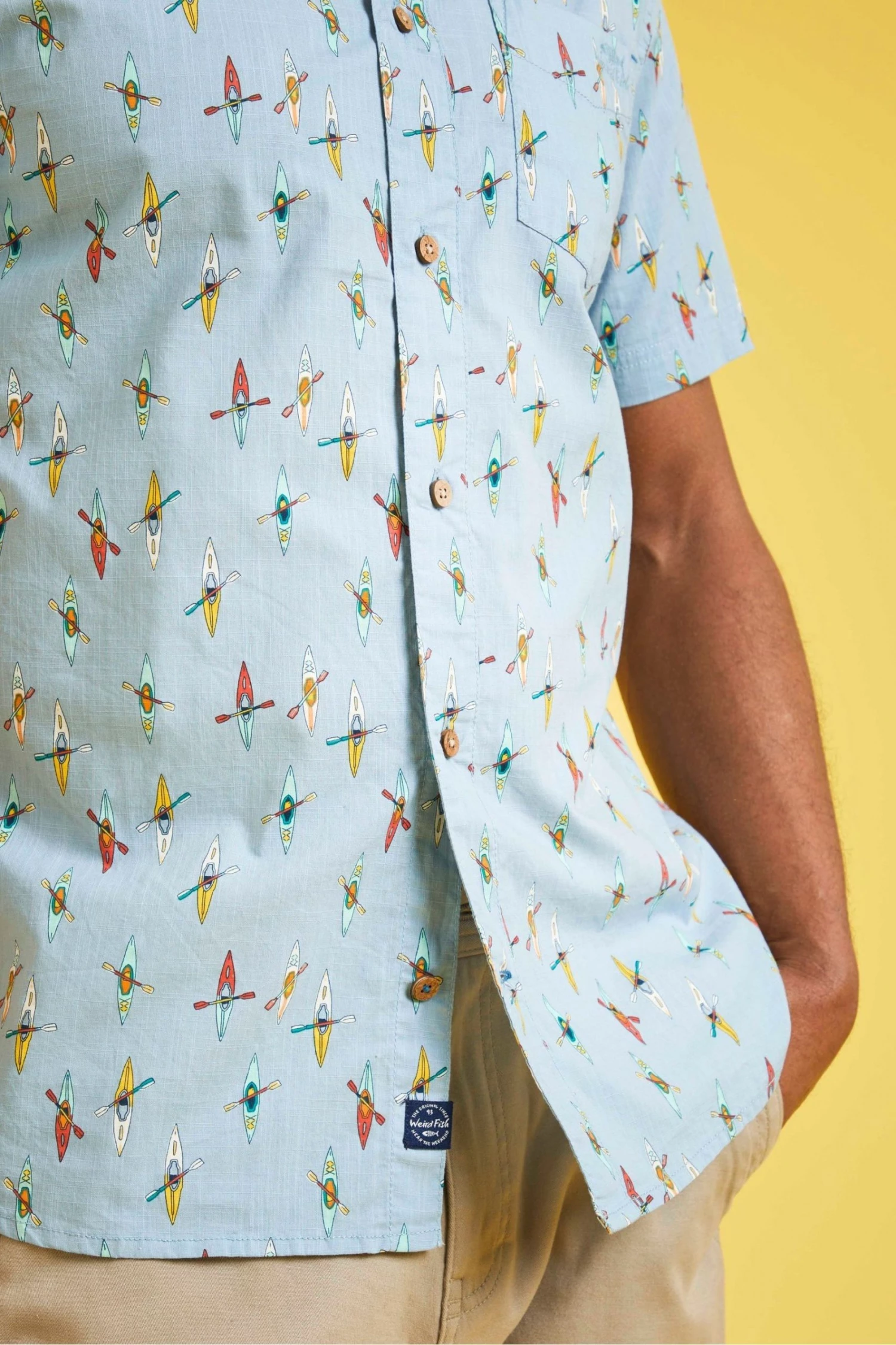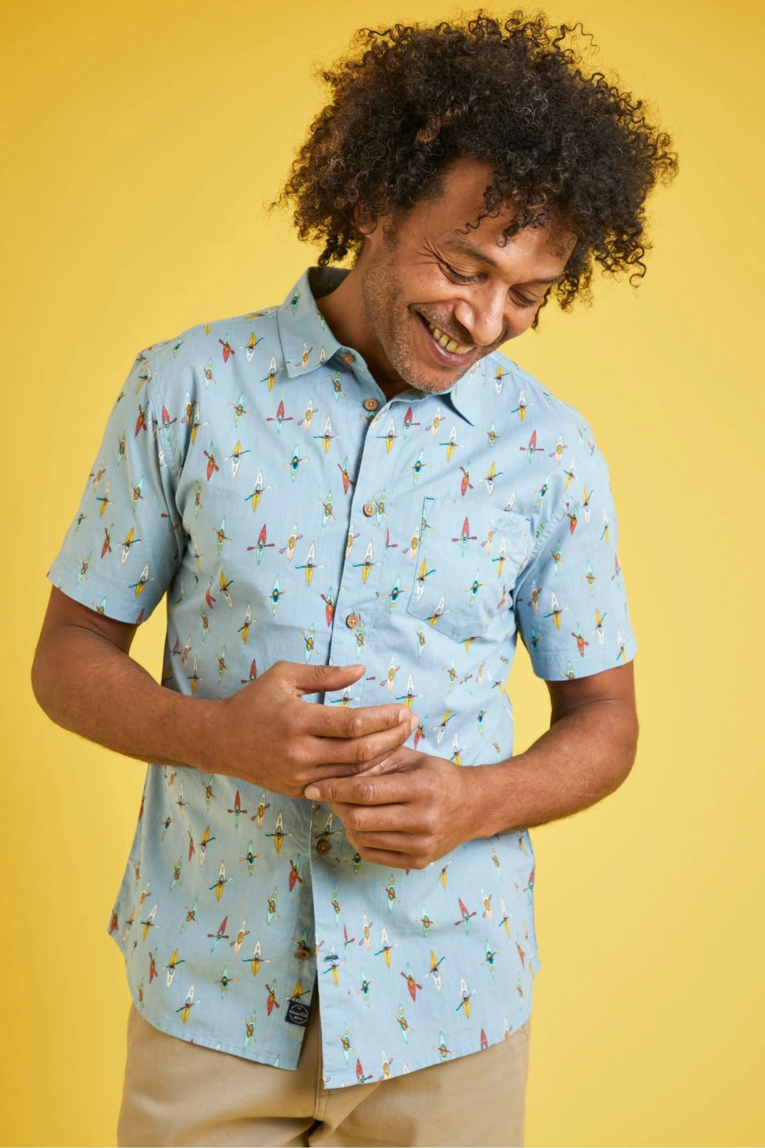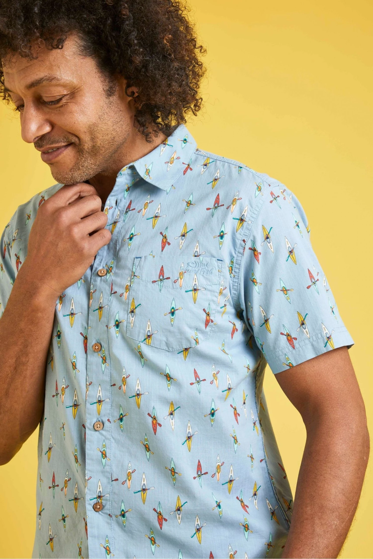 Make a statement this season in their organic cotton kayak print shirt. Featuring all your favourite Weird Fish features such as coconut shell buttons, branded logo and chest pocket, you’re bound to feel like a member of the shoal in their Oceanside organic cotton short sleeve shirt. Wear this printed shirt with your favourite board shorts for a summer ready look. Features – All over print. Chest pocket. Coconut shell buttons. Embroidered logo on chest pocket. The choice to pick an organic cotton item of clothing is an easy one when you know there are no toxic chemicals used to grow the cotton. It doesn’t damage the soil and uses 88% less water than regular cotton and 62% less energy, so you can look and feel great knowing you’re doing good for the planet. 100% Organic Cotton.