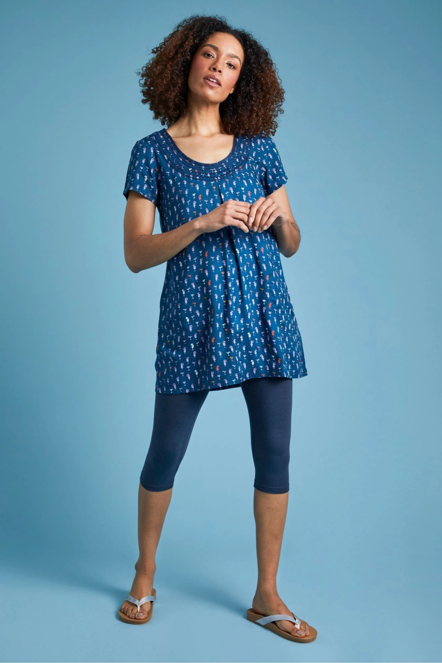 When the sun finally makes an appearance, you are going to want the Santo printed tunic for women. Now made from Eco Viscose, it is perfect to wear on hot summer days. Still feeling a little chill while walking along the beach in the evening, why not layer up the Santo printed tunic with jeans and a cardigan for the perfect transitional look? Named after the darling town of Santo, this is the perfect tunic to wear on holiday. Comes with an embroidered neckline, hand pockets and capped sleeves.