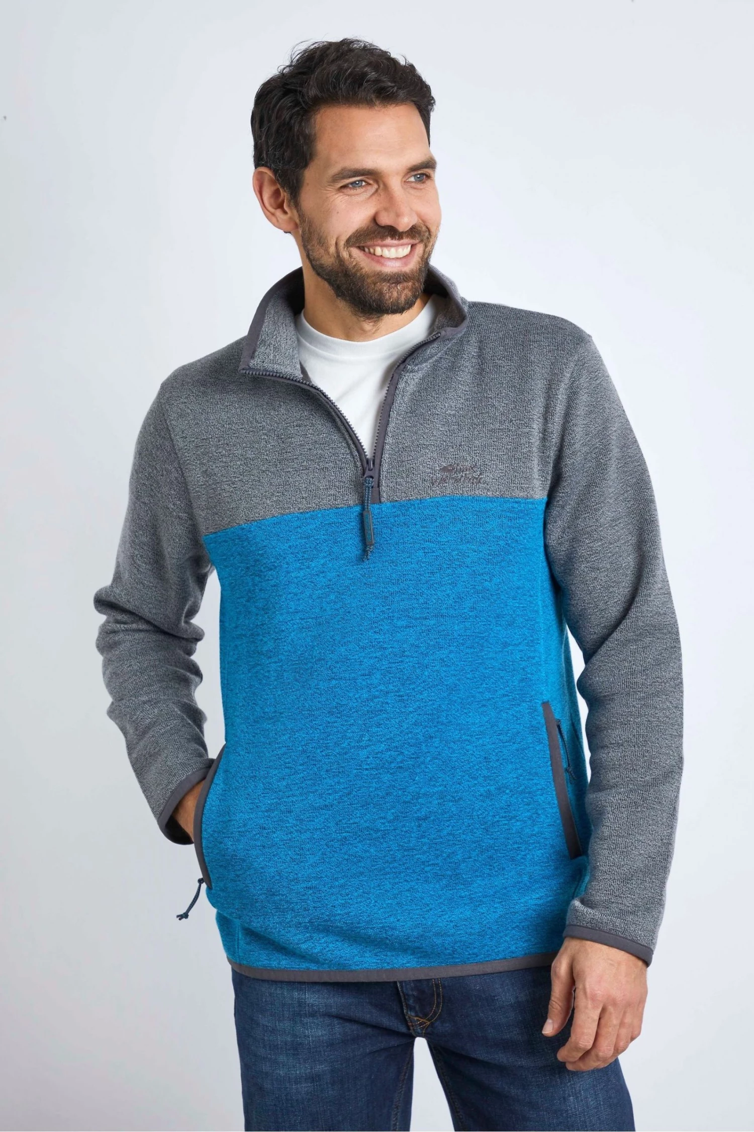 Looking good, check. Practical, check. Comfortable, check. A classic soft knit jumper for men, Weird Fish love this navy jumper with a pair of denim jeans. Easy to throw on this soft knit 1/4th zip jumper will become a go to on those cold chilly days. Features a unique bungee cord zip feature, embroidered logo, 1/4 Zip fleece and colourblock two tone fleece. They love clothes and fabrics that do good, recycled polyester is making waves as it is turning pre-existing plastics such as that water bottle you used at a festival a life time ago into your new Weird Fish favourite. Using more recycled polyester rather than traditional polyester, reduces landfill, which means less soil contamination, air and water pollution.