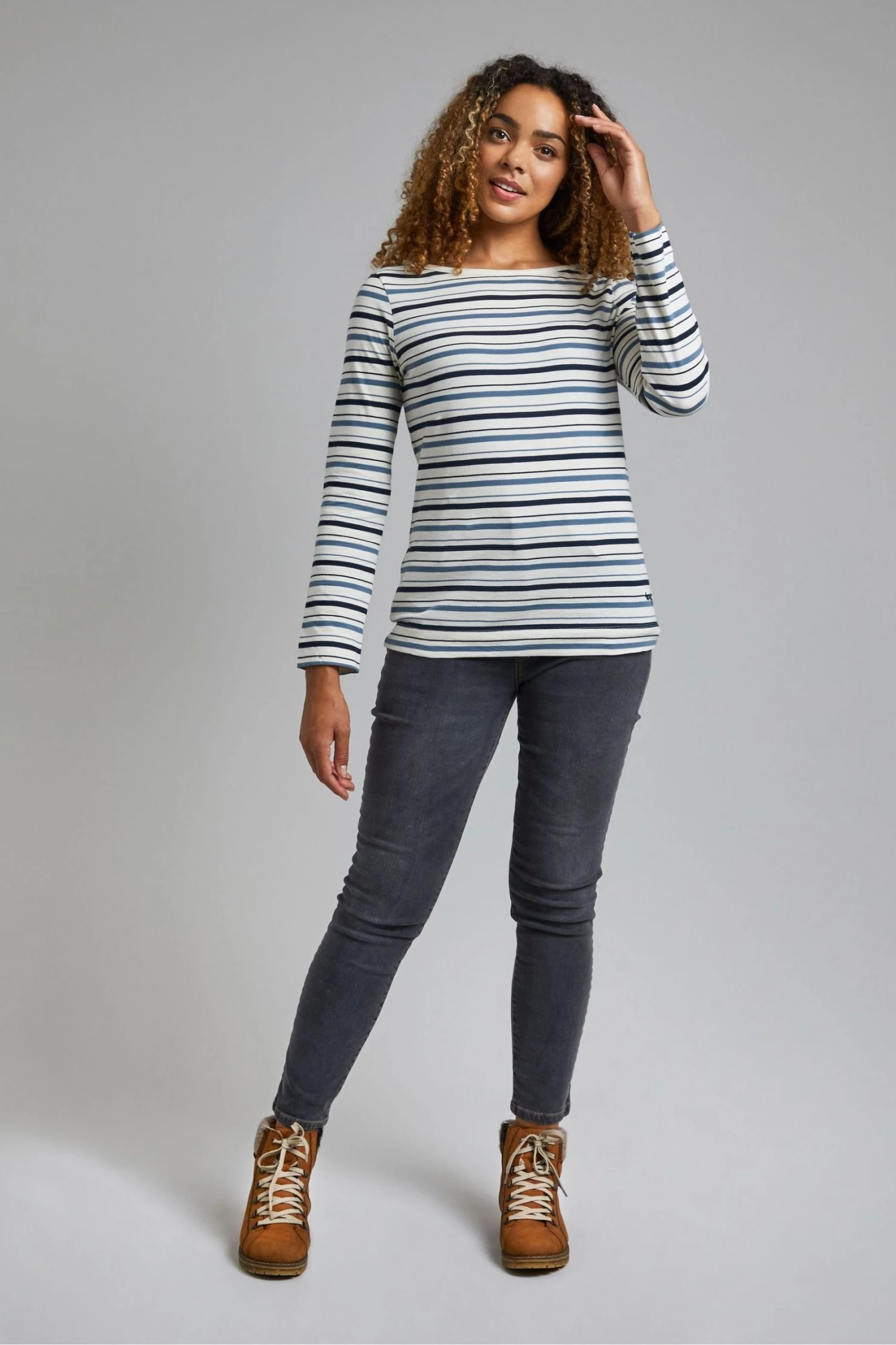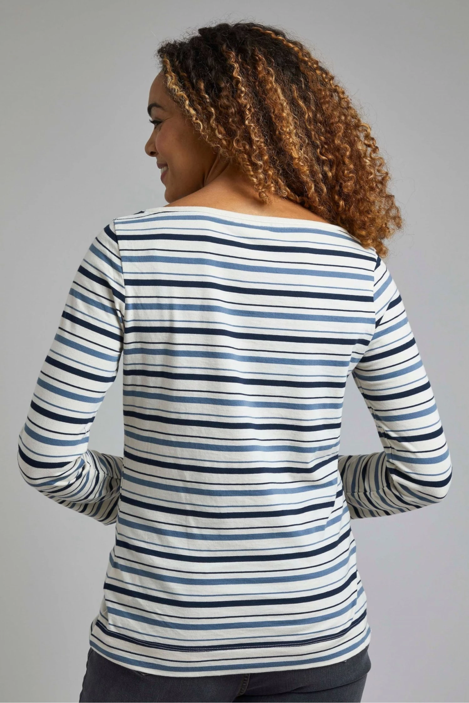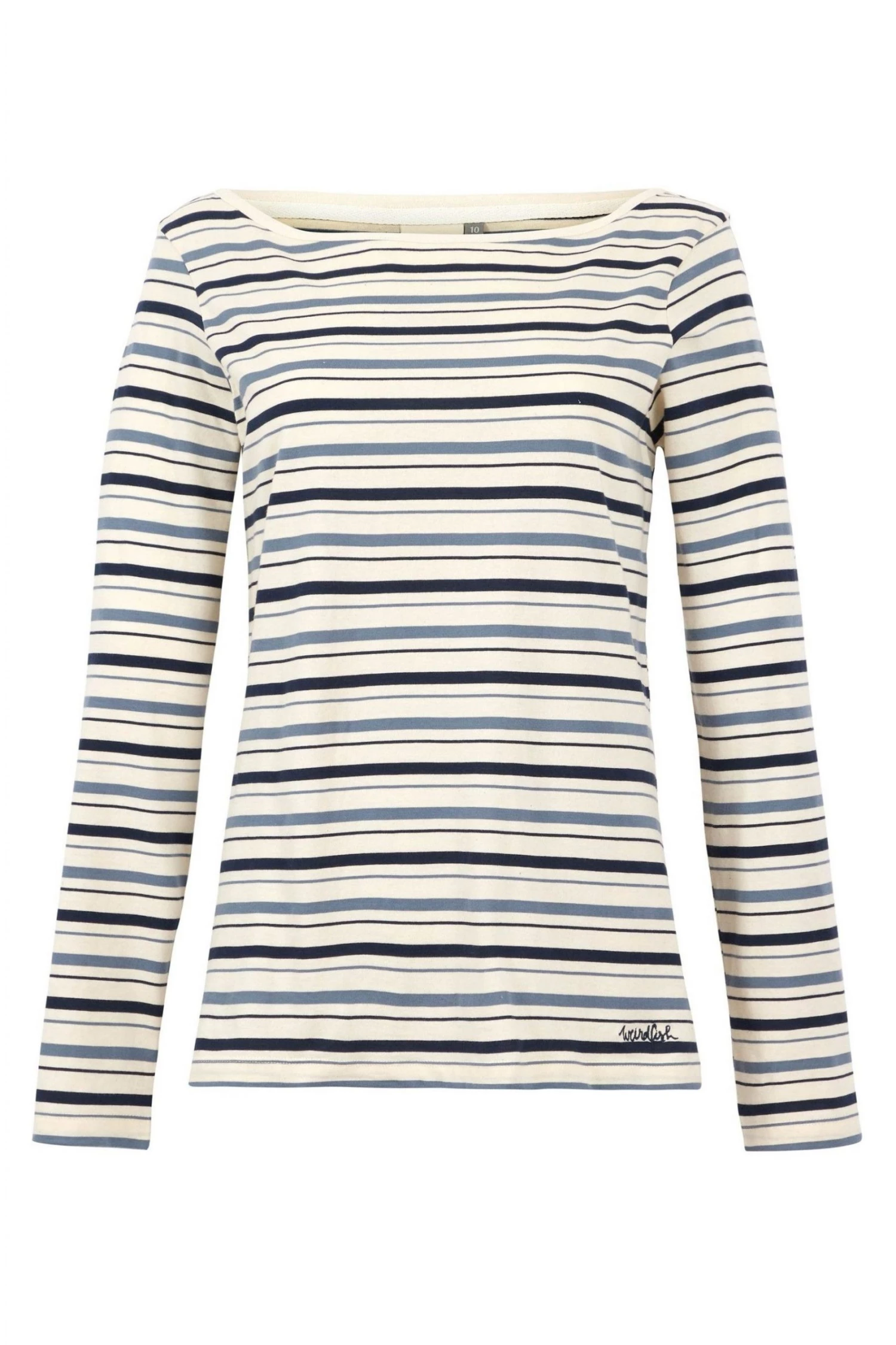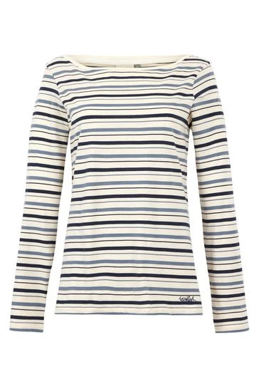 You know Weird Fish love a stripe, and they know you love them too, especially on a T-shirt. The Cecilia long sleeve striped T-shirt is a wonderful layering piece, you can wear it under a light jacket or fleece, or simply wear on its own if the sun comes out. Styled with a wide boat neck for an elegant shape, this striped T-shirt will quickly become your favourite tee to wear to create casual outfits. Did They mention it is also 100% organic cotton, so it does good as well as feel good. Made from organic cotton. Long sleeve T-shirt. Scoop neck. Embroidered logo at hem. Strong and soft fabric. The choice to pick an organic cotton item of clothing is an easy one when you know there are no toxic chemicals used to grow the cotton. It doesn’t damage the soil and uses 88% less water than regular cotton and 62% less energy, so you can look and feel great knowing you’re doing good for the planet.