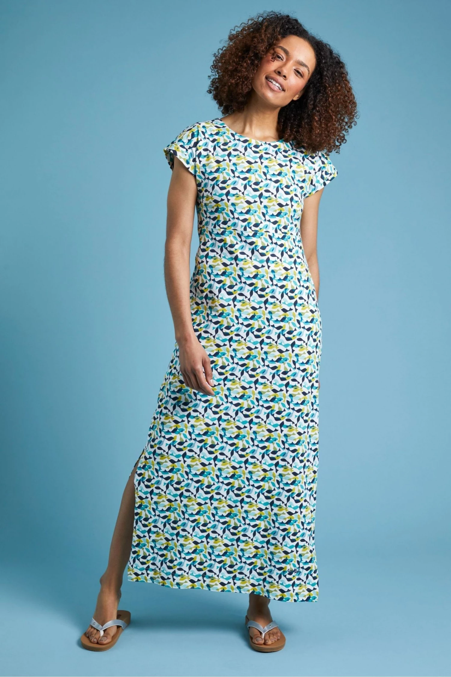 If you love Weird Fish’s best-selling Tallahassee dress then you are bound to love this organic cotton maxi. The Mirren is the new classic T-shirt style shape but with a longer, maxi length and side splits for easy movement. Stand out for all the right reasons in our beautiful and bold organic cotton maxi dress. The Mirren organic cotton maxi dress is perfect for every occasion, from walking along the beach or a trip to the pub! Features – Round neckline. Rolled T-shirt sleeves. Made from organic cotton. Flattering waistline. Side splits. The choice to pick an organic cotton item of clothing is an easy one when you know there are no toxic chemicals used to grow the cotton. It doesn’t damage the soil and uses 88% less water than regular cotton and 62% less energy, so you can look and feel great knowing you’re doing good for the planet.