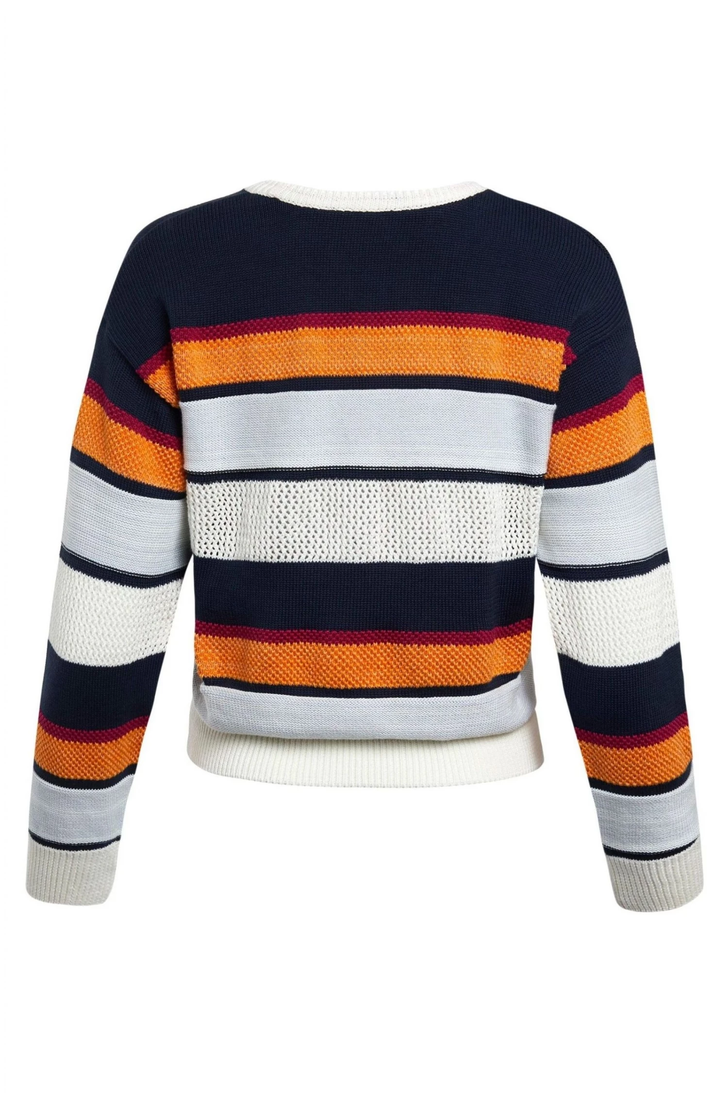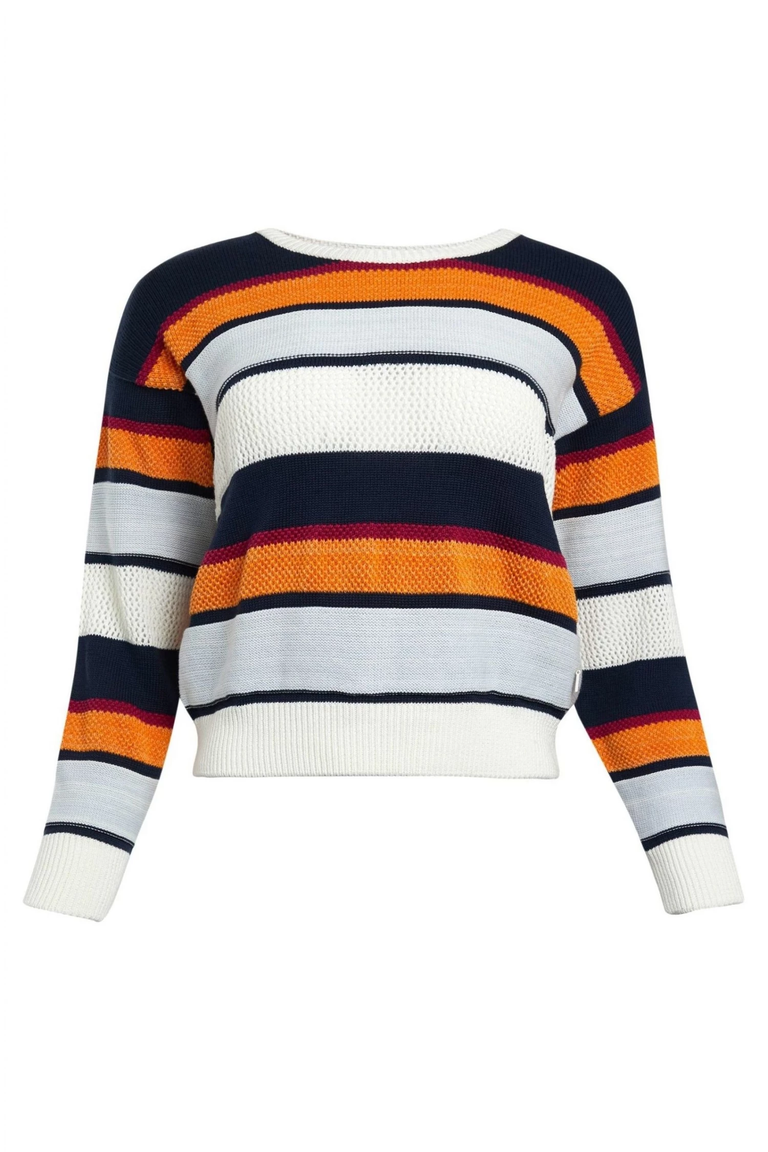 A beautiful jumper for the summer months, the Rocco is the perfect companion to the beach, work or the bar. Featuring bright pops of colour in a variety of wide and narrow stripes, Weird Fish loves the Rocco jumper. The Rocco boasts beautiful sunset shades, a scoop neckline and a shorter, stylish length. Wear with summer shorts or denim jeans, where ever you’re going, you’ll want to be rocking the Rocco jumper. Features – Large and small stripes. Bold pops of colour. Scoop neckline. Shorter stylish length. Supersoft fabric. The choice to pick an organic cotton item of clothing is an easy one when you know there are no toxic chemicals used to grow the cotton. It doesn’t damage the soil and uses 88% less water than regular cotton and 62% less energy, so you can look and feel great knowing you’re doing good for the planet.