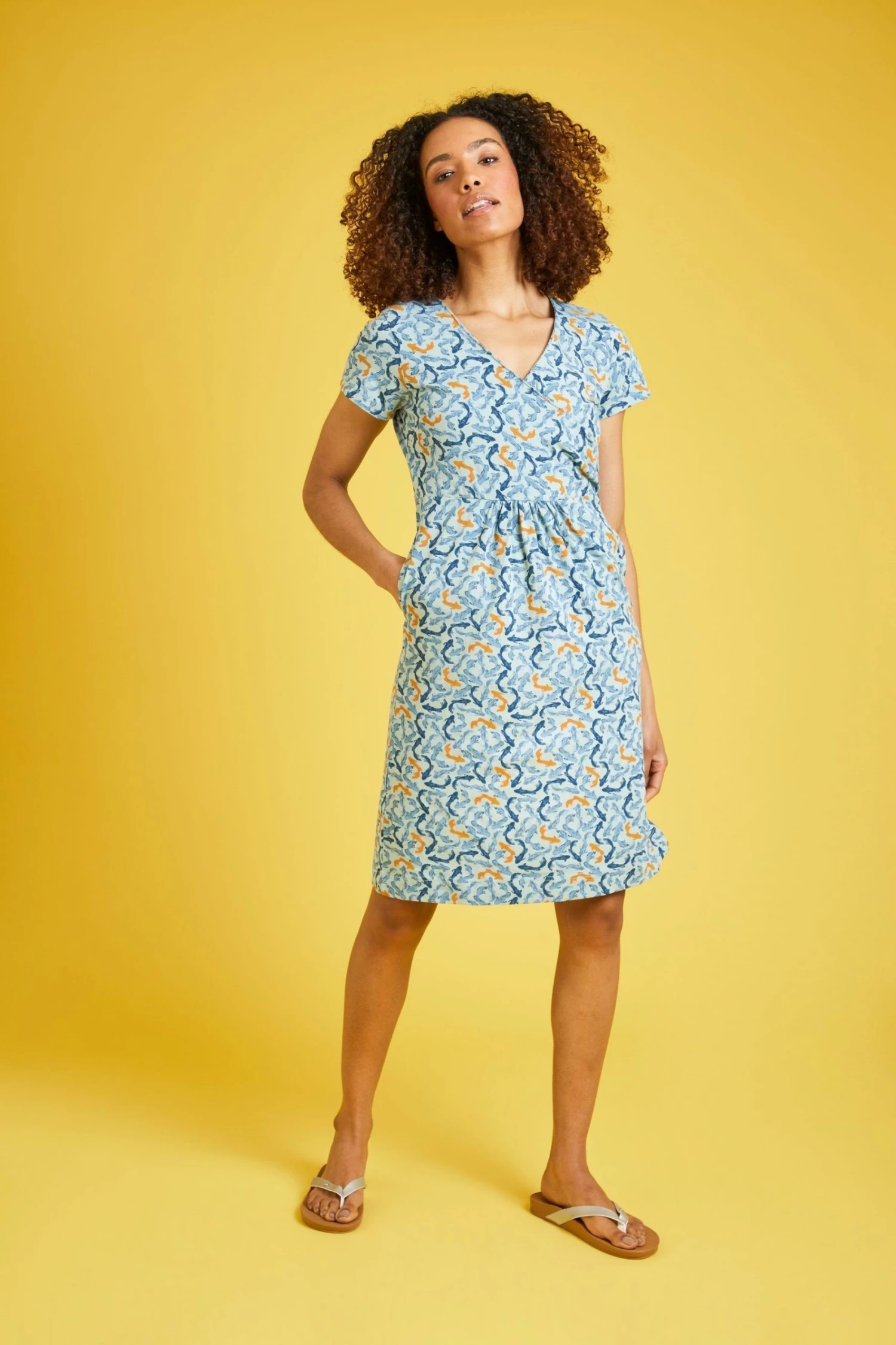 The perfect dress to wear to work, the bar or to the beach, the Simmee wrap dress is a must-have this season. Great to rock with heels, sandals, flip flops or pumps, this versatile dress is simply a dream! When the weather takes a chilly turn, pair the Simmee organic cotton dress with a cosy cotton cardigan. Features – Two hand slip pockets. Wrap bust detail. Gathering at the bust. Contains organic cotton. The choice to pick an organic cotton item of clothing is an easy one when you know there are no toxic chemicals used to grow the cotton. It doesn’t damage the soil and uses 88% less water than regular cotton and 62% less energy, so you can look and feel great knowing you’re doing good for the planet.
