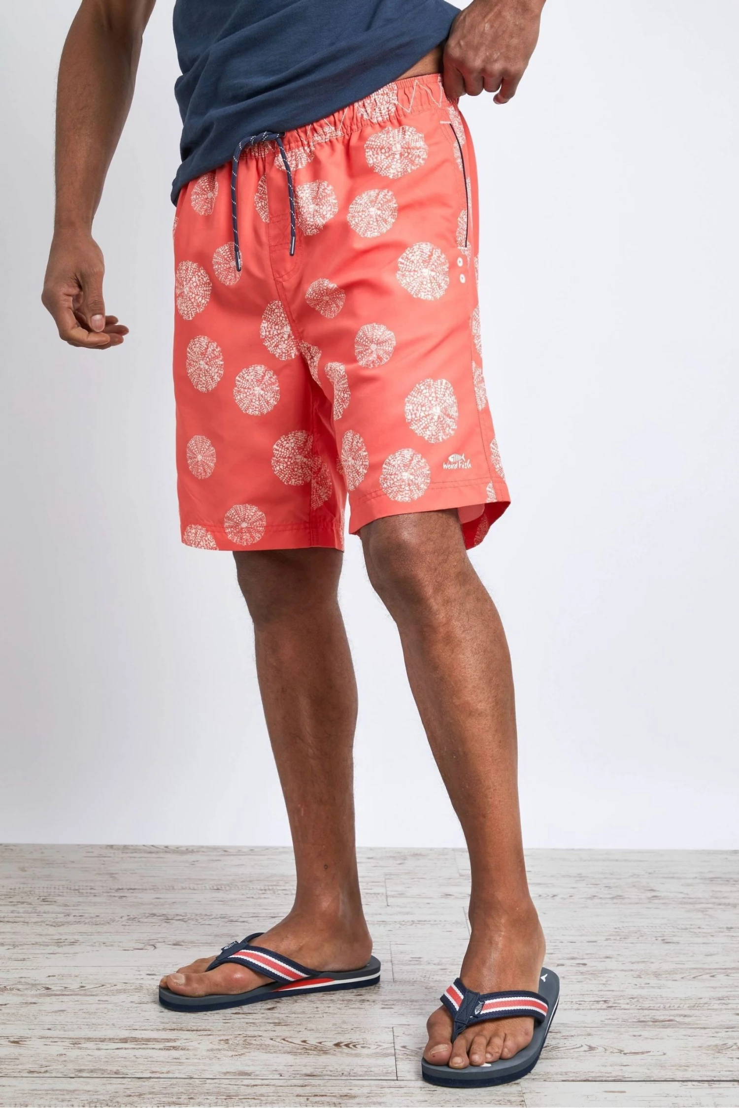 The Marina printed board shorts are the perfect companion to the beach or to the pool. Featuring a fun all over print, two hand slip pockets and a drawstring waist, these are the must have bit of kit this season! Features – Two hand slip pockets, draw string waist, all over print, made from recycled polyester. Material 100% Recycled Polyester.