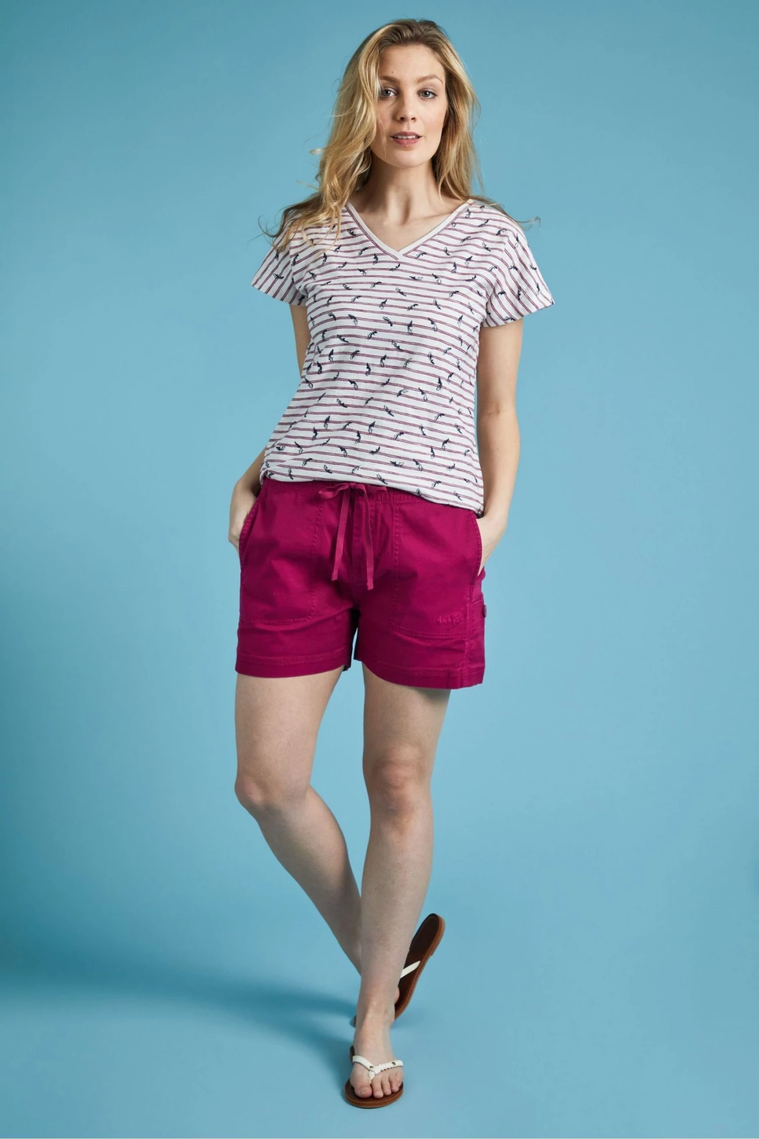 Back for 2022, the Carlita organic cotton T-shirt is a firm favourite for spring and summer. This classic V-neck is exactly what you need to stay looking and feeling cool on those hot summer days. Pair with your favourite denim shorts when the sun is shining, or on those cloudy days rock with your go-to denim jeans and Weird Fish Macaroni! V neck T-shirt. Made from organic cotton. Weird Fish embroidered logo. Short sleeve top. The choice to pick an organic cotton item of clothing is an easy one when you know there are no toxic chemicals used to grow the cotton. It doesn’t damage the soil and uses 88% less water than regular cotton and 62% less energy, so you can look and feel great knowing you’re doing good for the planet.