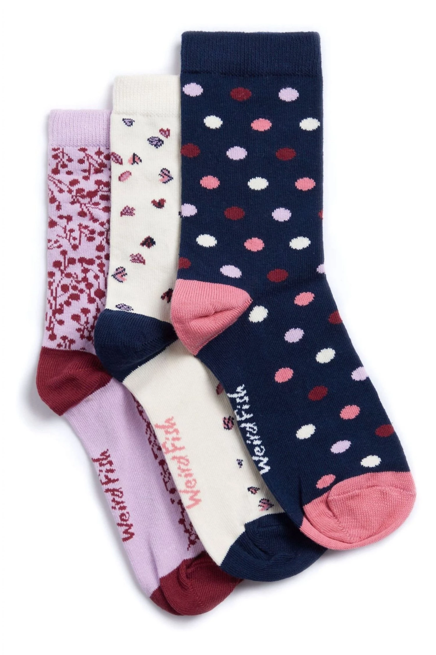 There is no better feeling than a pair of fresh, clean, new socks on your tootsies! Weird Fish love their Parade set of socks. The Parade socks make a great gift too! Three pack of patterned socks. Makes a great gift. Contains organic cotton. Three colour options. The choice to pick an organic cotton item of clothing is an easy one when you know there are no toxic chemicals used to grow the cotton. It doesn’t damage the soil and uses 88% less water than regular cotton and 62% less energy, so you can look and feel great knowing you’re doing good for the planet.