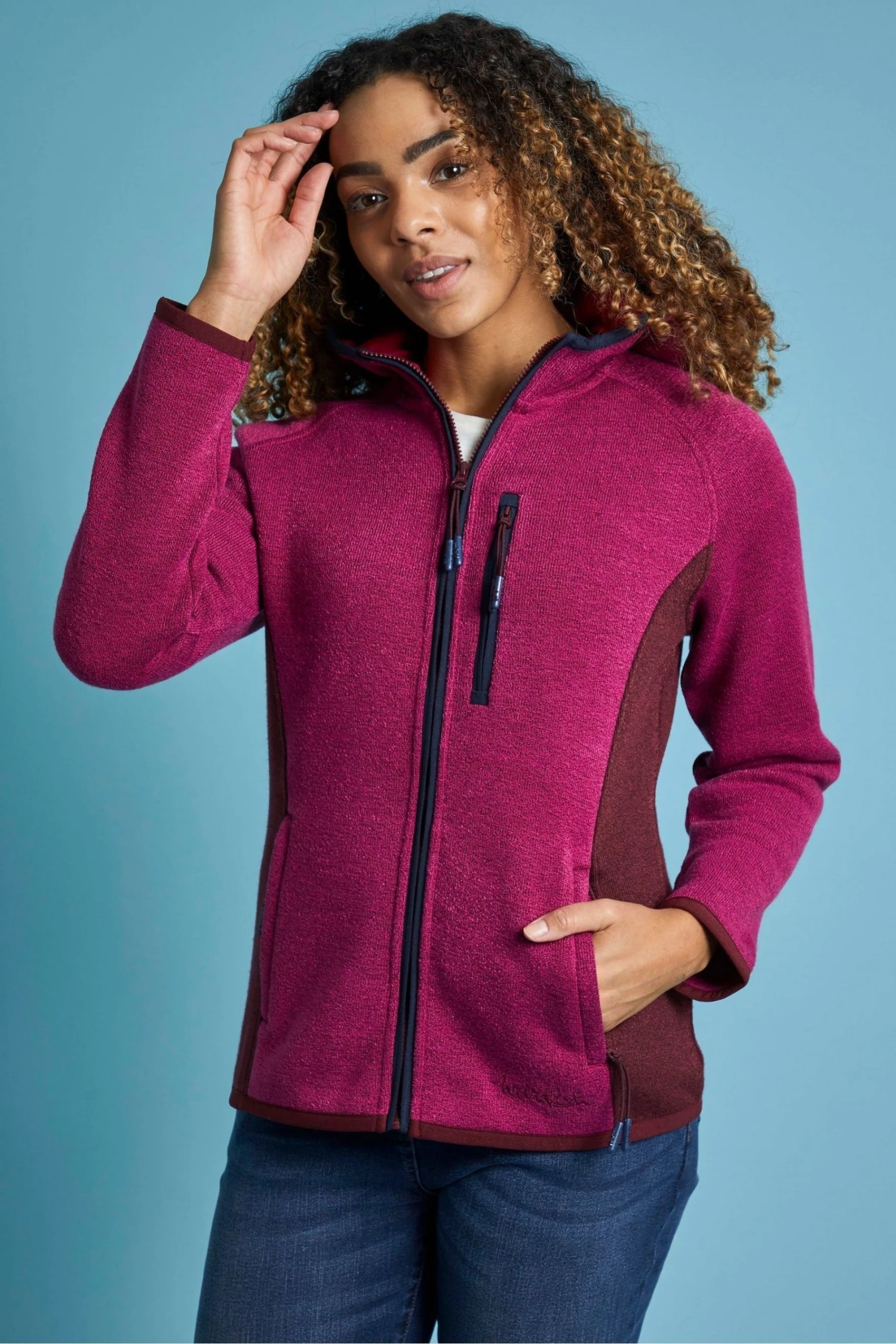Practical and comfortable this navy casual women’s hooded full zip knitted hoodie is perfect to wear all year round. Wear with denim jeans in the autumn and winter, pair with denim shorts and a tank top in the summer! This hoodie is the perfect mix of practical and stylish. It will keep you comfortable no matter the season thanks to its soft fabric and bungee cord zip detail that lets you adjust it by tying or unzipping. Full zip jacket. Two full zip hand pockets. Full zip chest pocket. Hooded knitted jacket. Made from recycled materials. They love clothes and fabrics that do good, recycled polyester is making waves as it is turning pre-existing plastics such as that water bottle you used at a festival a life time ago into your new Weird Fish favourite. Using more recycled polyester rather than traditional polyester, reduces landfill, which means less soil contamination, air and water pollution. 100% Recycled Polyester.