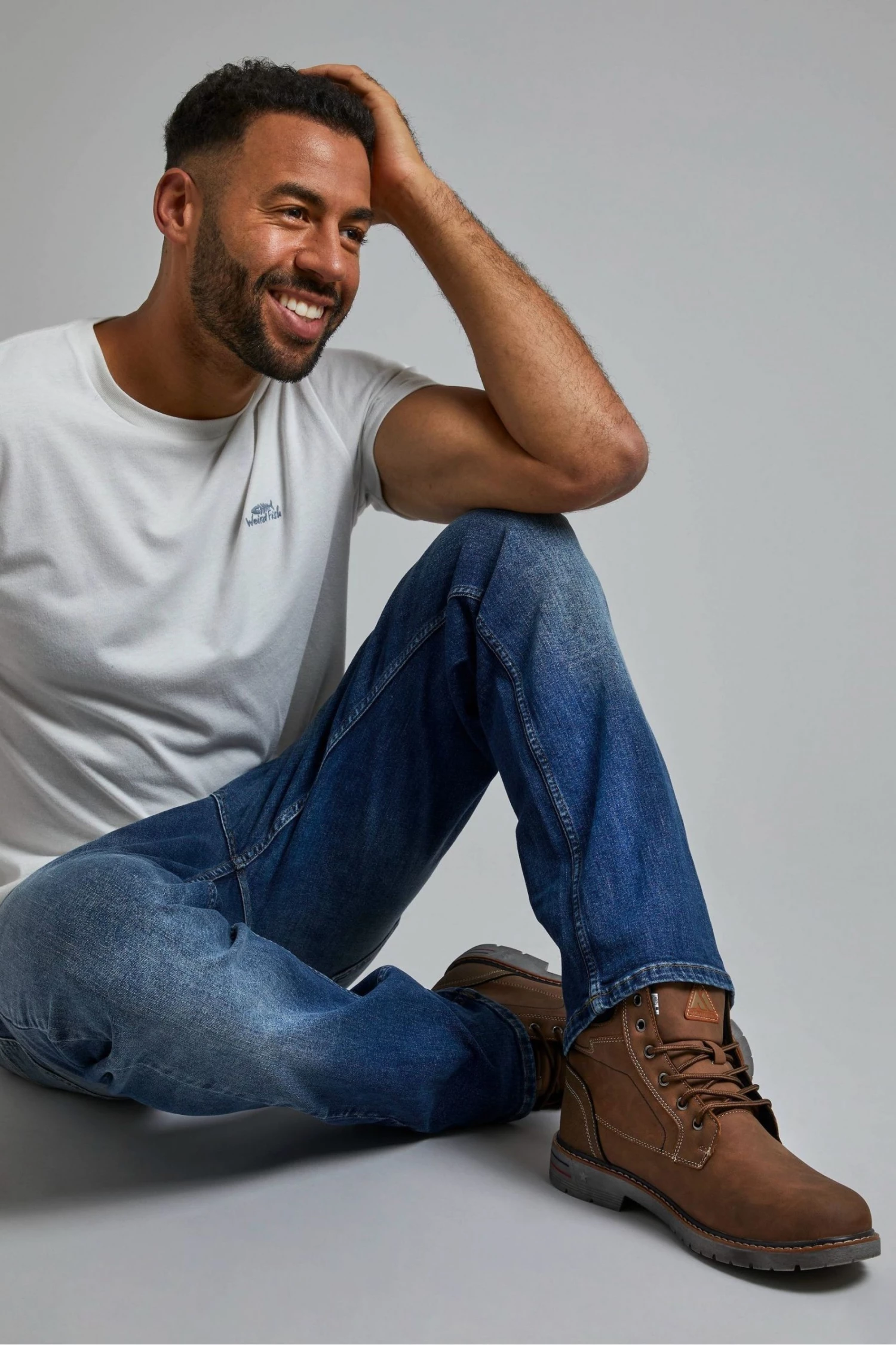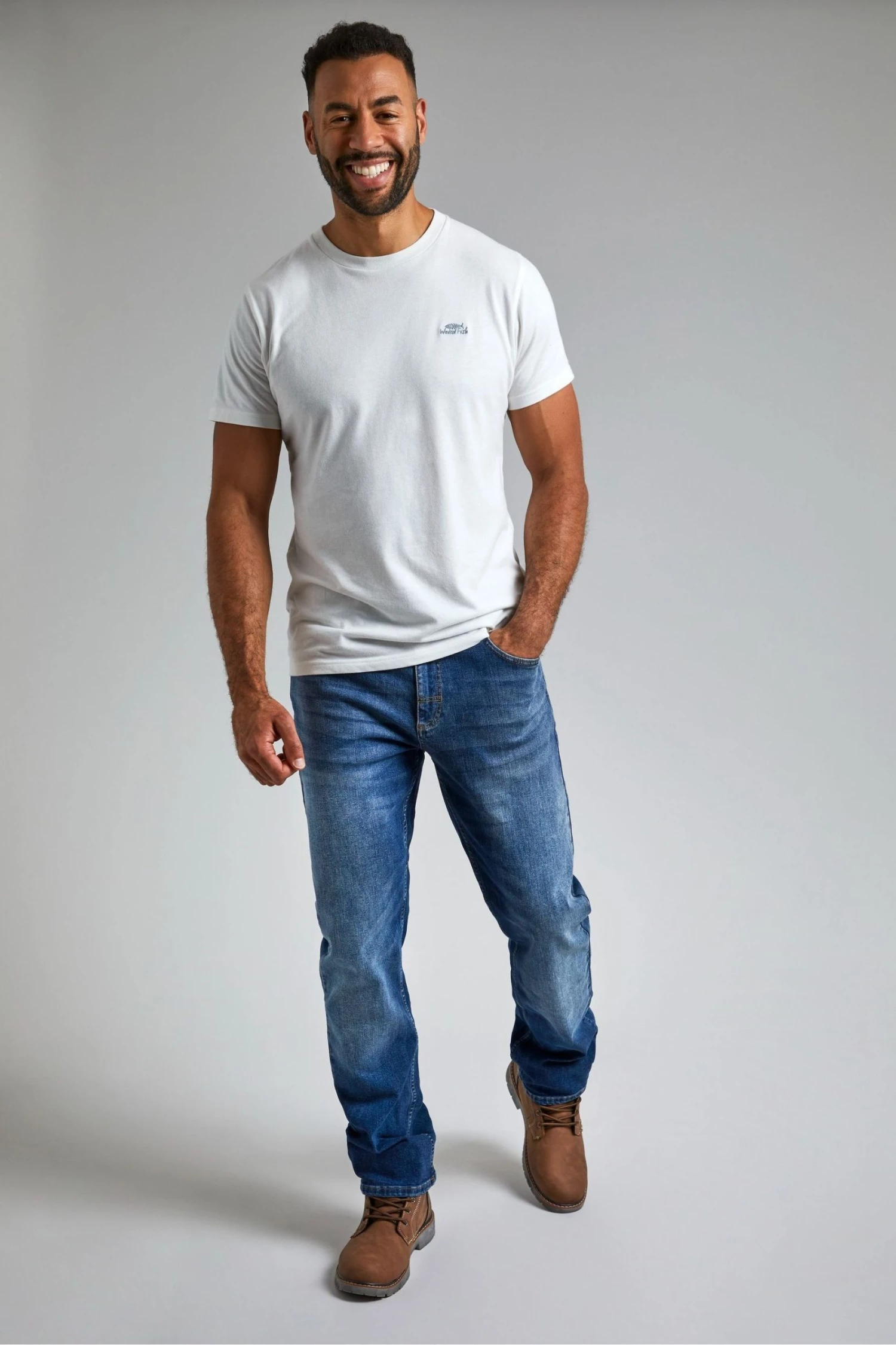 Your favourite pair of men’s denim jeans are available in a range of washes. These denim jeans are made from one of their favourite strong and soft fabrics, organic cotton. Features – Available in short, regular or long leg lengths. Coin pocket. Made with Organic Cotton. Two hand slip pockets and two back pockets. Designed to be your favourite pair, the Robson denim jeans are perfect to wear every day. A classic cut and style, you’ll love these organic cotton denim jeans with your go-to T-shirt and jacket this season. These organic cotton-rich jeans have been finished with a touch of elastane to give you a flexible, comfortable fit you’ll love. The choice to pick an organic cotton item of clothing is an easy one when you know there are no toxic chemicals used to grow the cotton. It doesn’t damage the soil and uses 88% less water than regular cotton and 62% less energy. Material – 98% Organic Cotton, 2% Elastane.