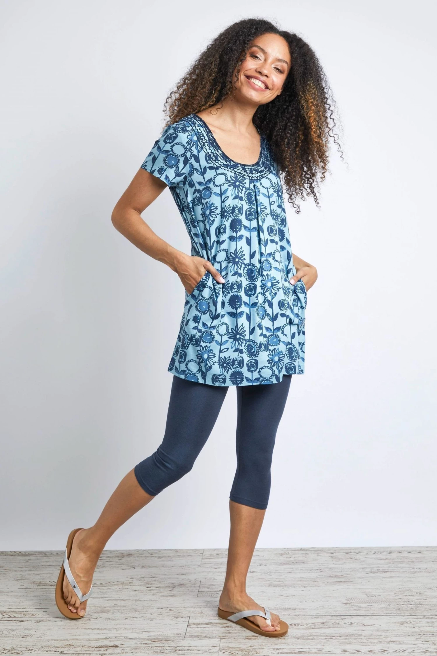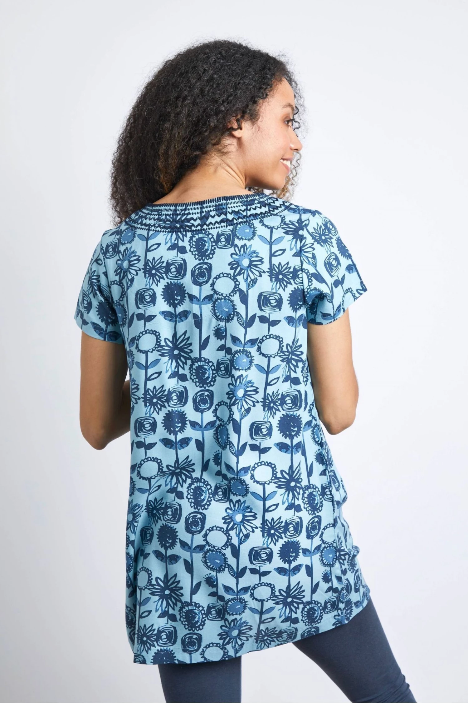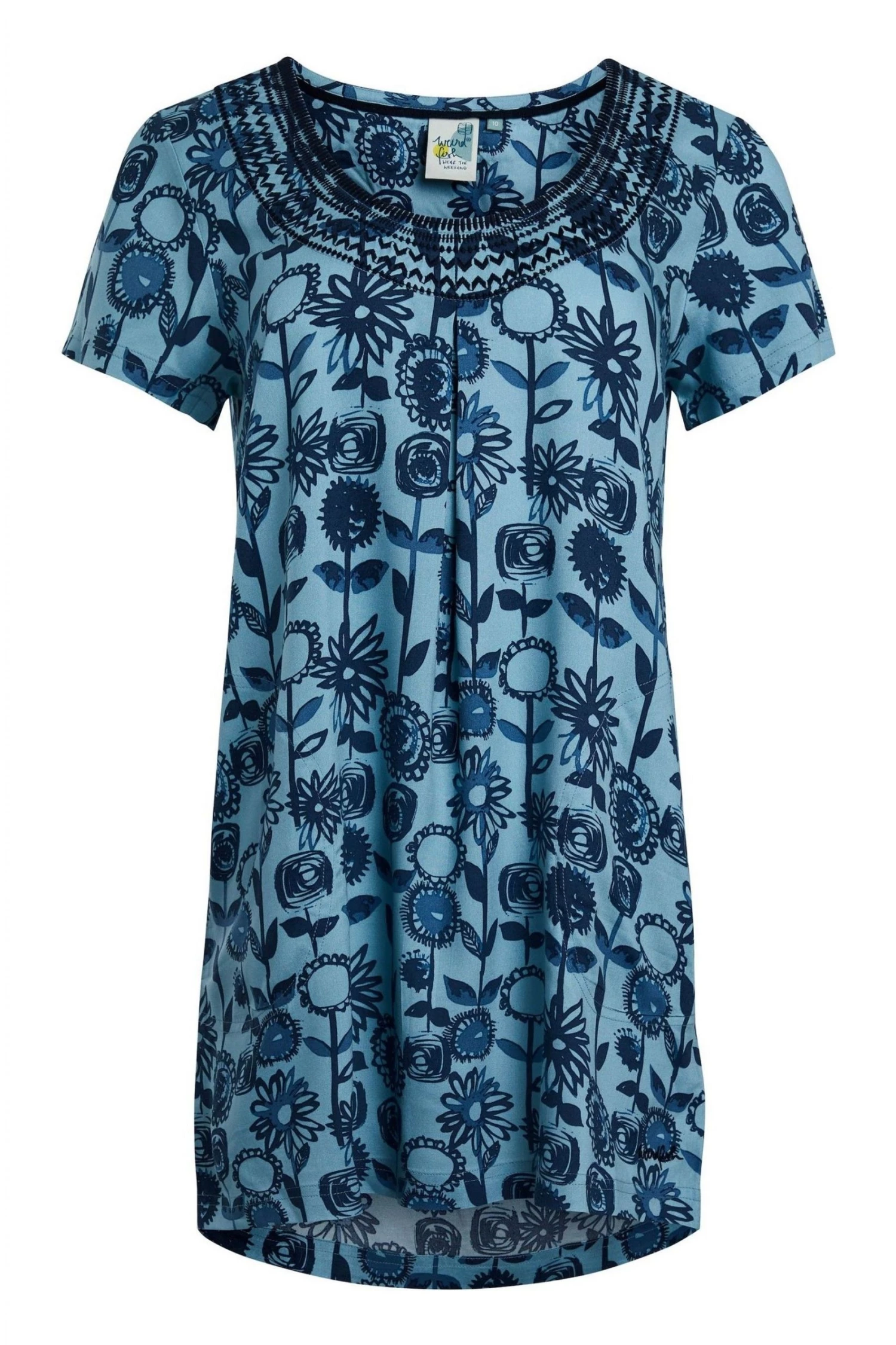 When the sun finally makes an appearance, you are going to want the Santo printed tunic for women. Now made from Eco Viscose, it is perfect to wear on hot summer days. Still feeling a little chill while walking along the beach in the evening, why not layer up the Santo printed tunic with jeans and a cardigan for the perfect transitional look. Named after the darling town of Santo, this is the perfect tunic to wear on holiday. Features: Embroidered neckline, hand pockets and capped sleeves.